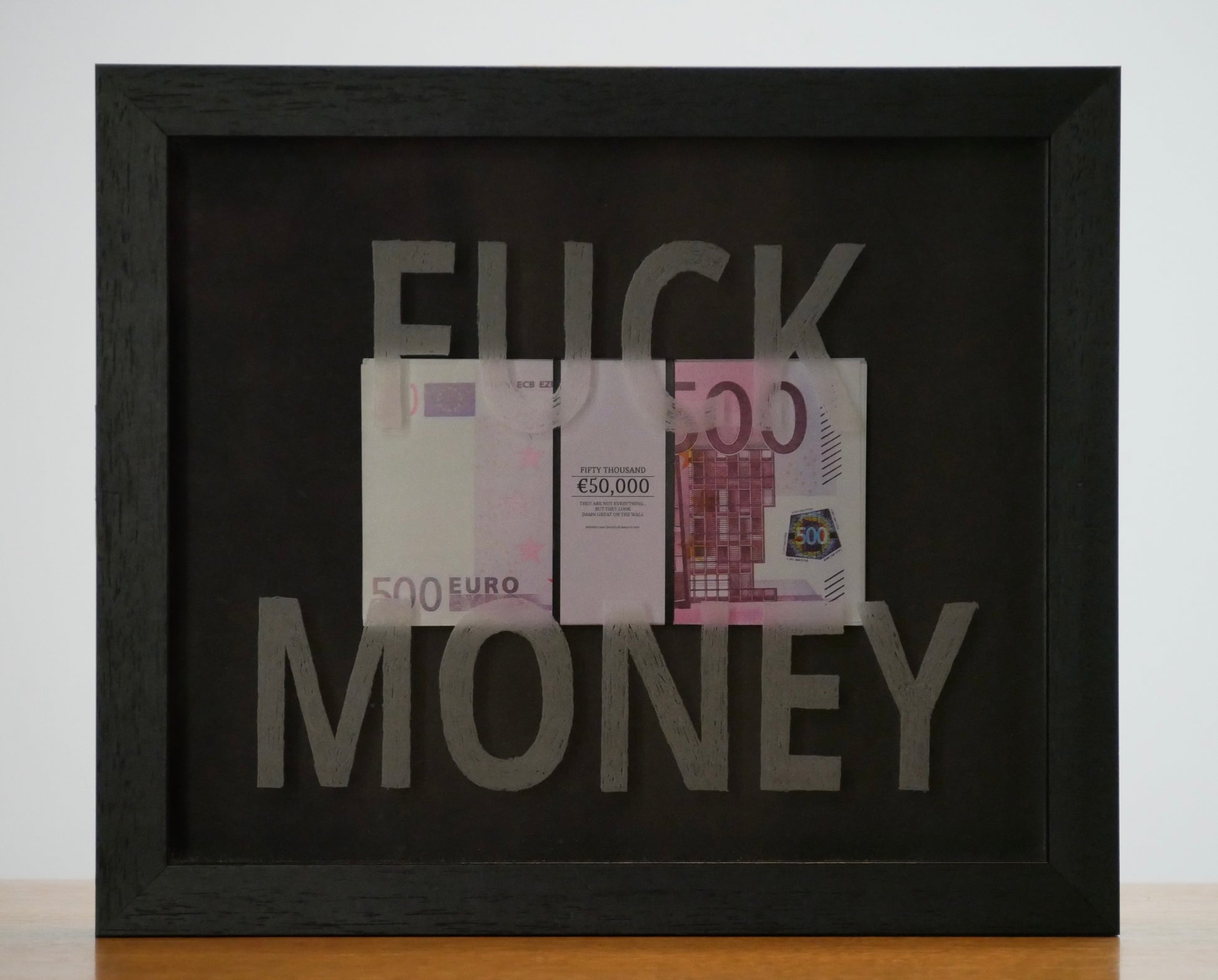 Sometimes the boldest statement is the simplest one. Fuck Money isn’t about hating money – it’s about refusing to let it control you. The cash inside serves as a paradox: a reminder that money is powerful, but only when you hold the power over it.