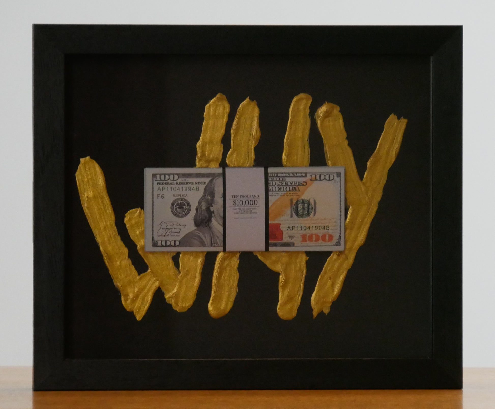 Every goal, every sacrifice, every late night… it all starts with one question: WHY. This piece blends a bold gold-painted backdrop with layered depth to anchor your purpose in something tangible.